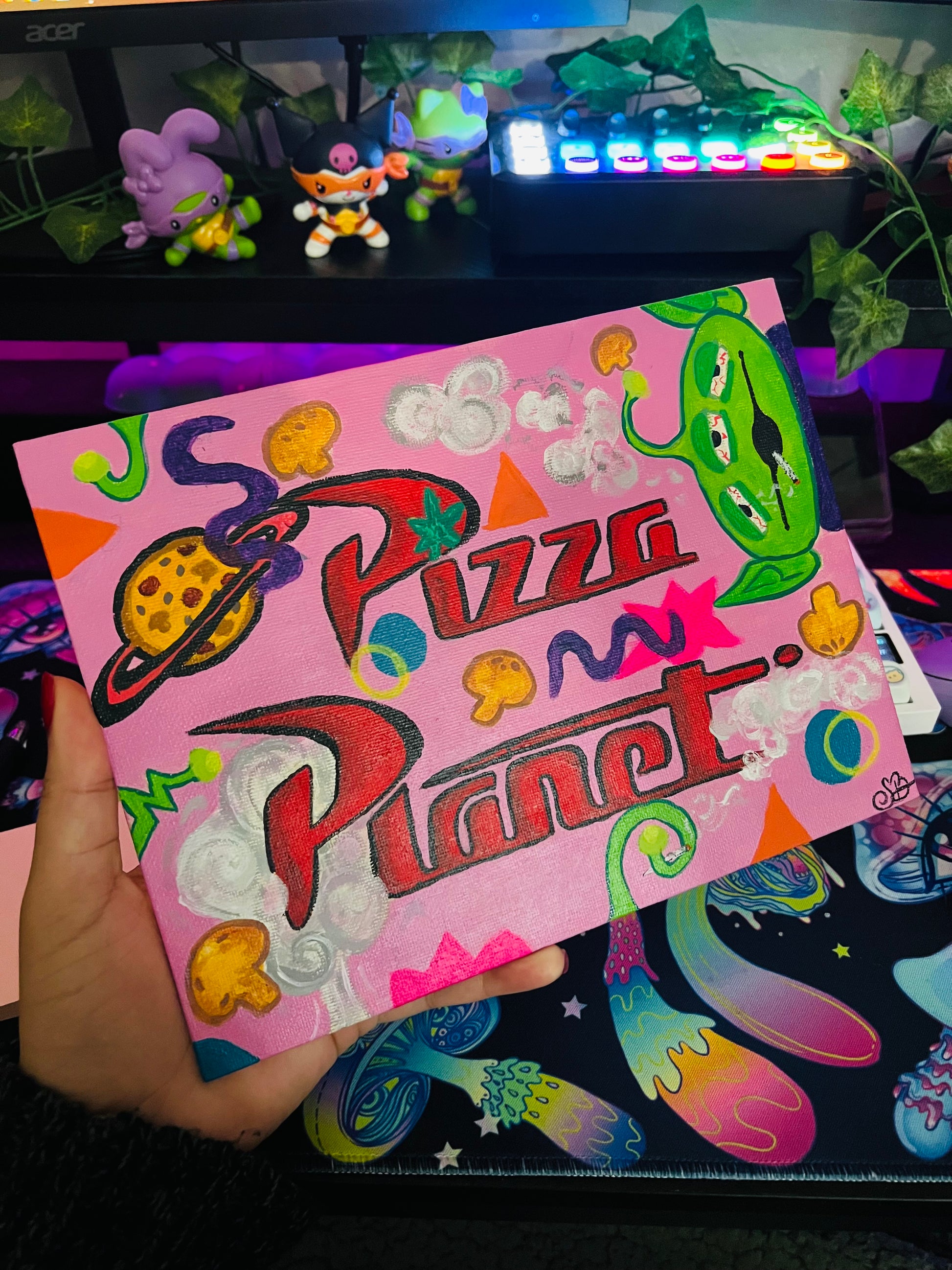 PIZZA PLANET | 7IN X 9.5 IN CANVAS | Acrylic Painting